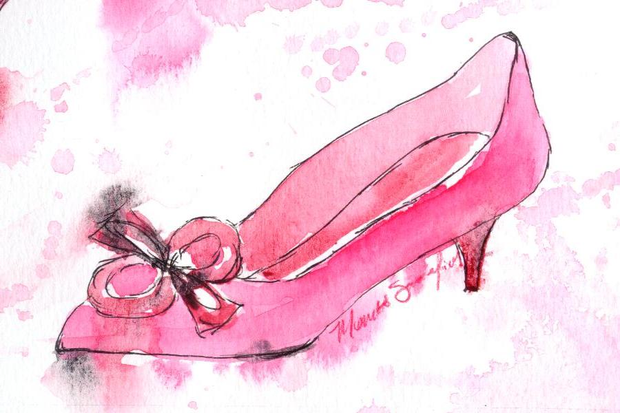 * What does this painting have to do with the post? Not much, but as cute as this shoe might be, it would make a lousy profile image. This watercolor sketch of a pink kitten heel pump was inspired by yesterday’s #emmitt tweetchat on Twitter which ended up being about shoes as a business model.